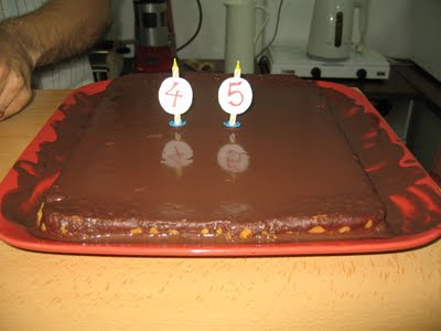 Bolo de cenoura com cobertura de chocolate para o aniversário